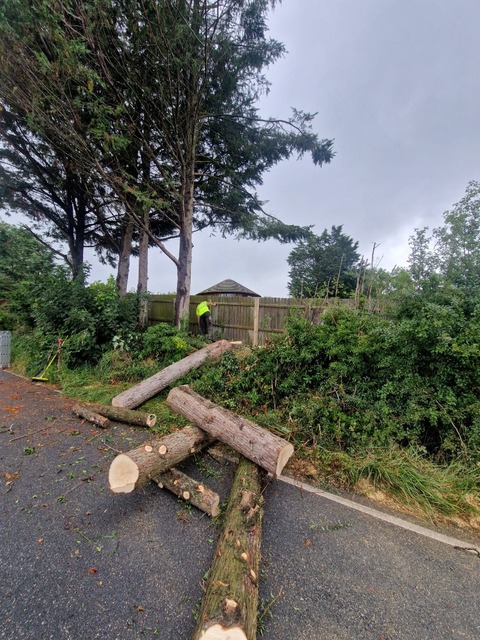 We removed the brash/branches from the trees and they were then sectionally dismantled into logs. The brash and branches were chipped on site and taken away and we also removed the logs.Another job completed in good time.