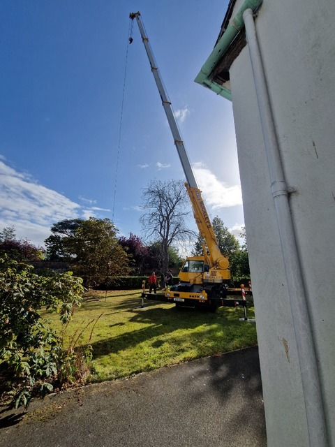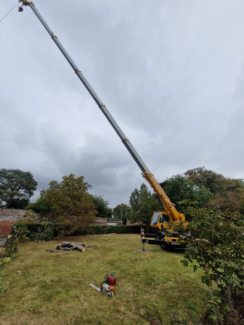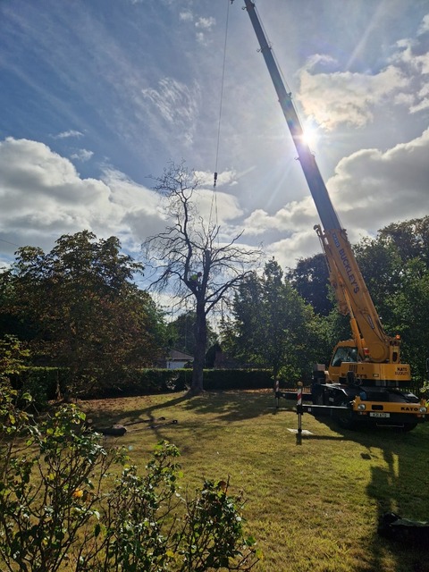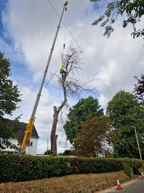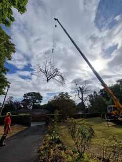 As the tree was dangerous for the climber a crane was brought in to make the process safer. This also makes it a lot more efficient and can mean we are on site for one day instead of two.