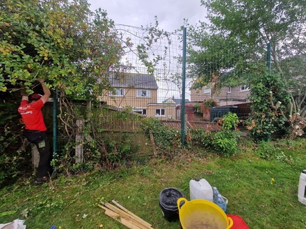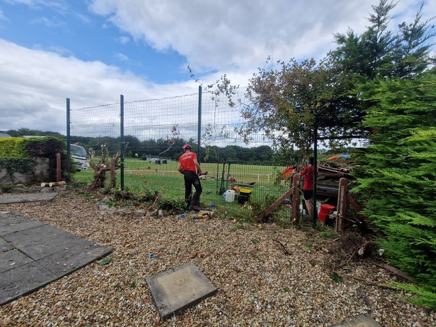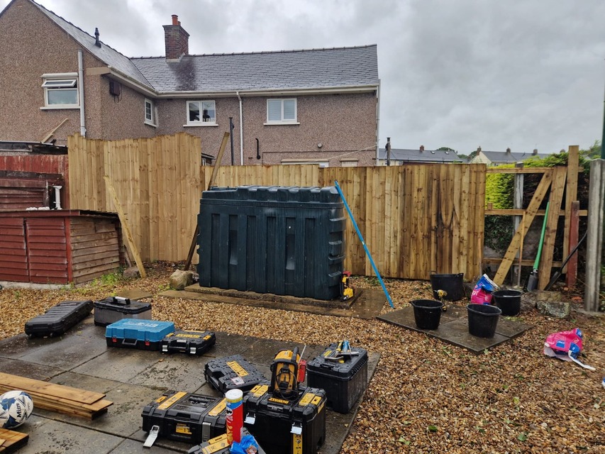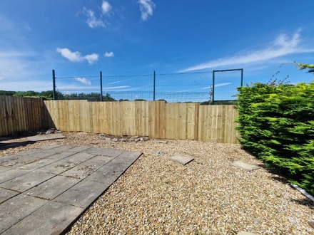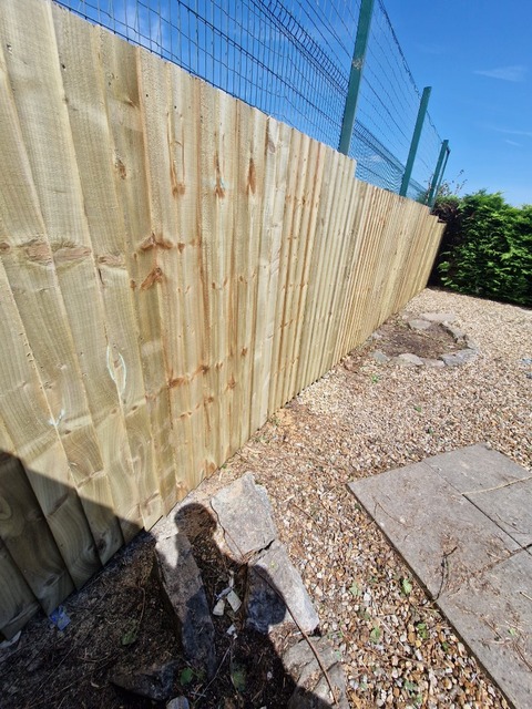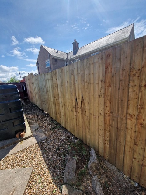 5 solid hard days work of feather edge fencing in North Wales. Old shrubs and vegetation were removed and all the posts were concreted in.