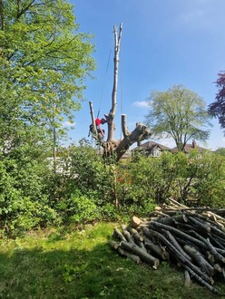Everything was chipped and removed and logs were left for the client in the garden as requested. There was no damage to the surrounding hedge and the public path to the front was left clean and tidy.